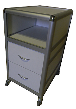 Под нишей расположены два выдвижных ящика. Выдвижение ящиков на роликовых направляющих, неполного выдвижения и защитой от выкатывания. Боковые стенки ящика металлические с полимерным покрытием. Дно и задняя стенка ящика из ЛДСП 16 мм крепятся к боковым стенкам (металлобоксу 450*86) при помощи саморезов. Видимые торцы ящика окантованны кромкой ПВХ 0,4*19 мм. Фасад ящика выполнен из пластика 3 мм в рамочном алюминиевом профиле 19*20 или ЛДСП 16 мм , окантованный кромкой ПВХ 0,4*19 мм. Для удобства пользования на ящики устанавливаются металлические ручки. Максимальная равномерно распределенная нагрузка на ящик до 10 кг.